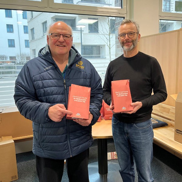 Filialleiterin Steffi Götz übergab die Pakete an Armin Wolf, Social Sponsoring Experte der KJF, der die Aktion in die Wege geleitet hatte. Die Päckchen nahm Hermann Zumüller, Einrichtungsleiter der Sozialen Dienste Jakob Reeb in Regensburg, entgegen. Er freute sich sehr und bedankte sich herzlich: „Wir sagen herzlich Vergelt‘s Gott und Danke! Wir geben die Weihnachtsgeschenke an die Menschen weiter, die wir begleiten. Das ist eine wichtige Wertschätzung!“